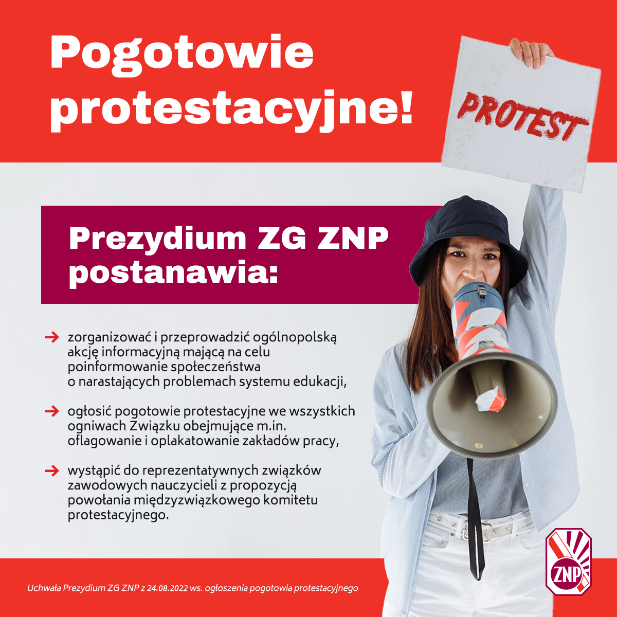 Uchwała nr 22/2022 Prezydium Zarządu Głównego ZNP z 24.08.2022 r. w sprawie ogłoszenia pogotowia protestacyjnego